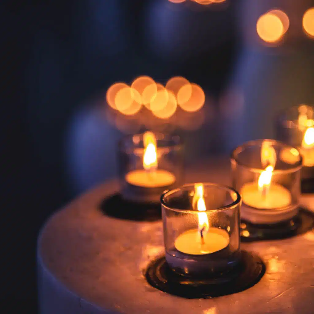 The candle flickers casting gentle shadows A cozy drowsy piano