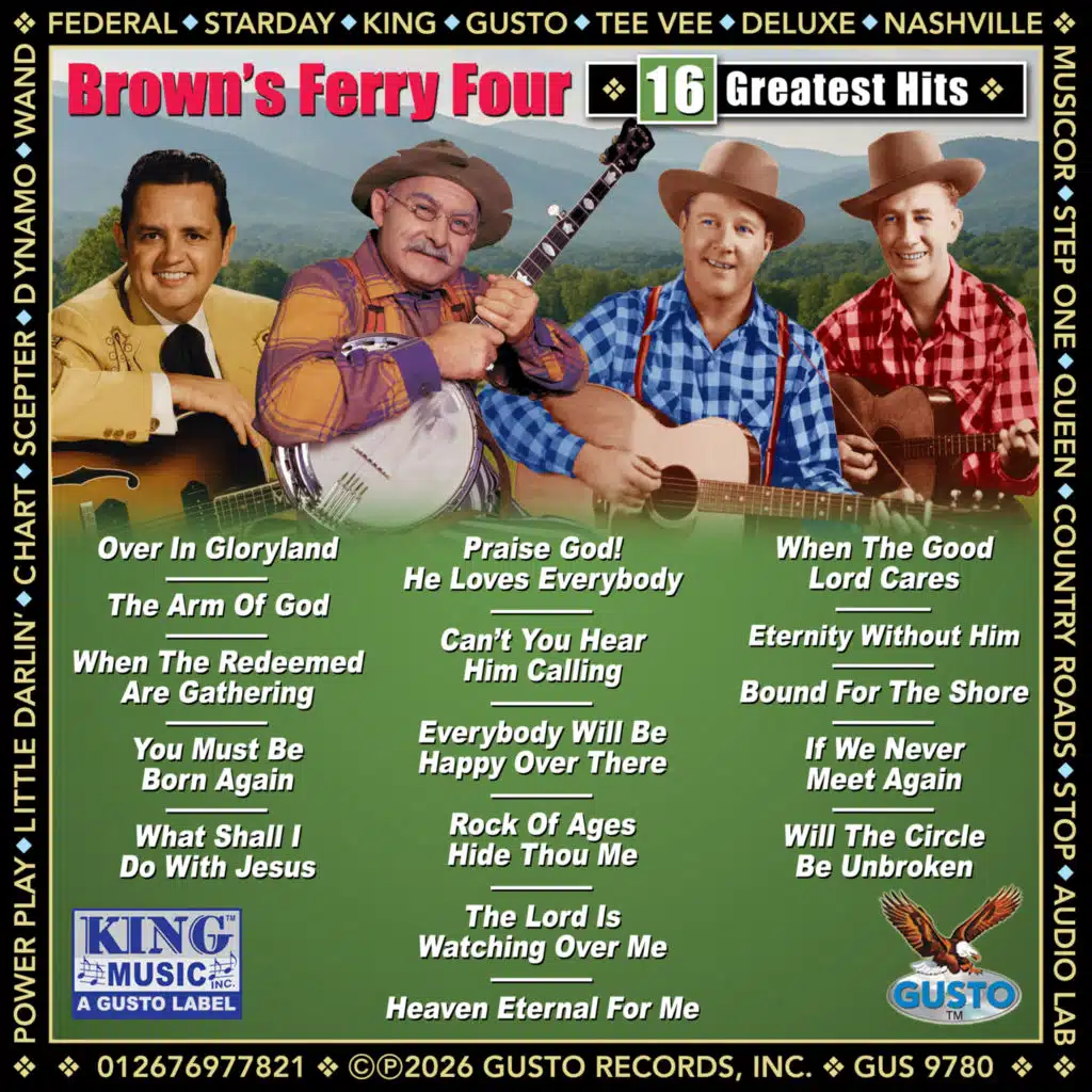 The Stanley Brothers, David Miller, Charlie Poole, Charley Patton, Gid Tanner & The Skillet Lickers, Bill Monroe & His Blue Grass Boys, Blind Willie Johnson, Dock Boggs, The Fairfield Four, The Carter Family, Buell Kazee, The Dixie Hummingbirds, Cannons Jug Stompers, Nugrape Twins, The Mississippi S