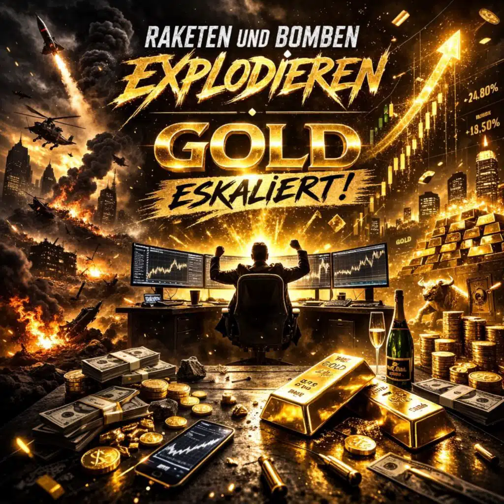 Raketen und Bomben explodieren, Gold eskaliert