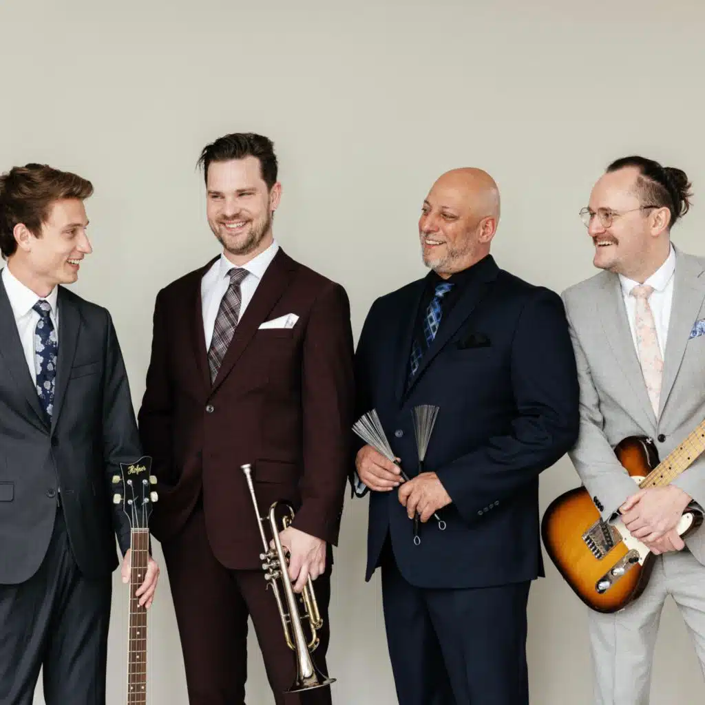 The Four Freshmen is an American male vocal band quartet that blends open-harmonic jazz arrangements with the big band vocal group sounds of The Modernaires (Glenn Miller), The Pied Pipers (Tommy Dorsey), and The Mel-Tones (Artie Shaw), founded in the barbershop tradition. The Four Freshmen is considered a vocal band because the s ... Show More