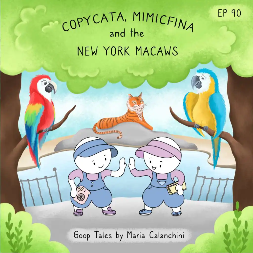 One spring day, Copycata and Mimicfina meet up with their friend Runner to try to catch a rare blue butterfly. While they're running around, the twins fall through a huge hole, landing on soft earth. When they emerge, they find themselves in the tiger exhibit of the New York Zoo! They escape quickly, only to end up in another exhibit, where they meet two Macaw parrots who don't seem to be of much help because they just keep mimicking everything the twins say!