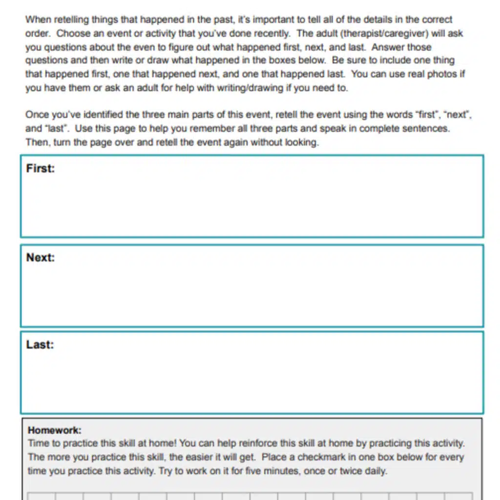 On this page, we’ll show you how to help a child with story recall and recalling past events. We’ll touch on how our Sequencing and Retelling Curriculum can provide a structured approach to teaching these skills to children and teens.