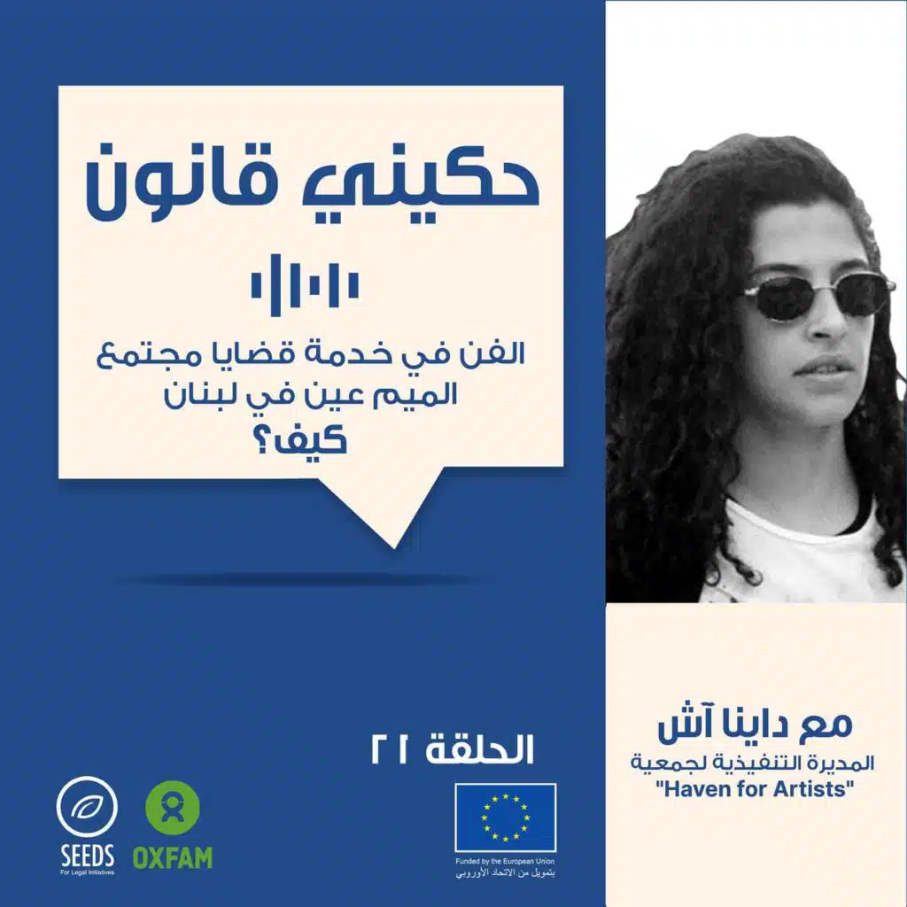 بهيدي الحلقة من بودكاست "حكيني قانون" منحكي عن كيف الفنون على اختلافها وتنوعها بتساهم بمناصرة قضايا مجتمع الميم عين في لبنان ودعم حقوقهم مع داينا اش، المديرة التنفيذية لجمعية Haven for Artists