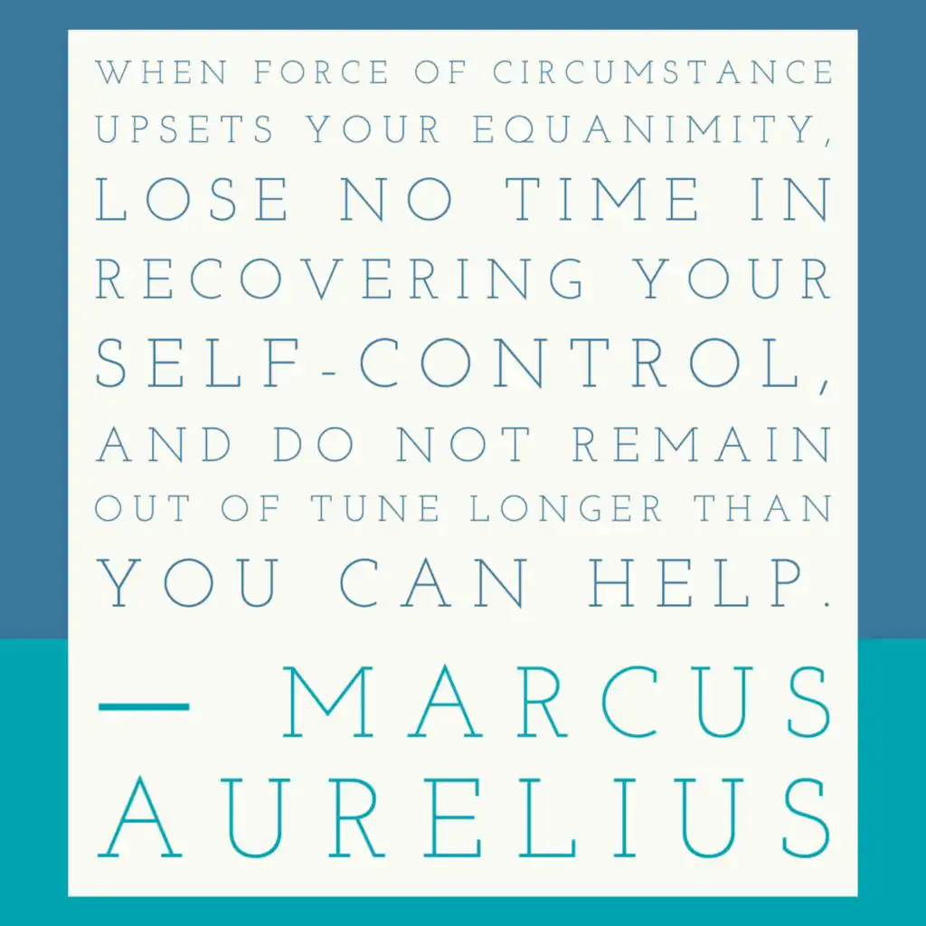 "When force of circumstance upsets your equanimity, lose no time in recovering your self-control, and do not remain out of tune longer than you can help. Habitual recurrence to the harmony will increase your mastery of it.”