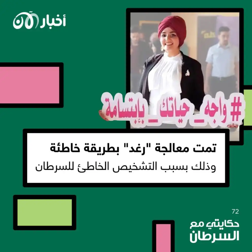 رغد من العراق محاربة سرطان الغدد اللمفاوية، اكتشفت إصابتها بالمرض بعدما لاحظت وجود ورم سرطان. وبعد الكشف عليه، تم تشخيص المرض بطريقة خاطئة، وتمت معالجة المرض بجرعات كيماوية خاطئة. فبعد فترة من العلاج تمت الفحوصات وأكد أطباء آخرون أن المرض في تطور وكأنها لم تتعالج من الأساس! وشبه بعض الأطباء العل ... Show More