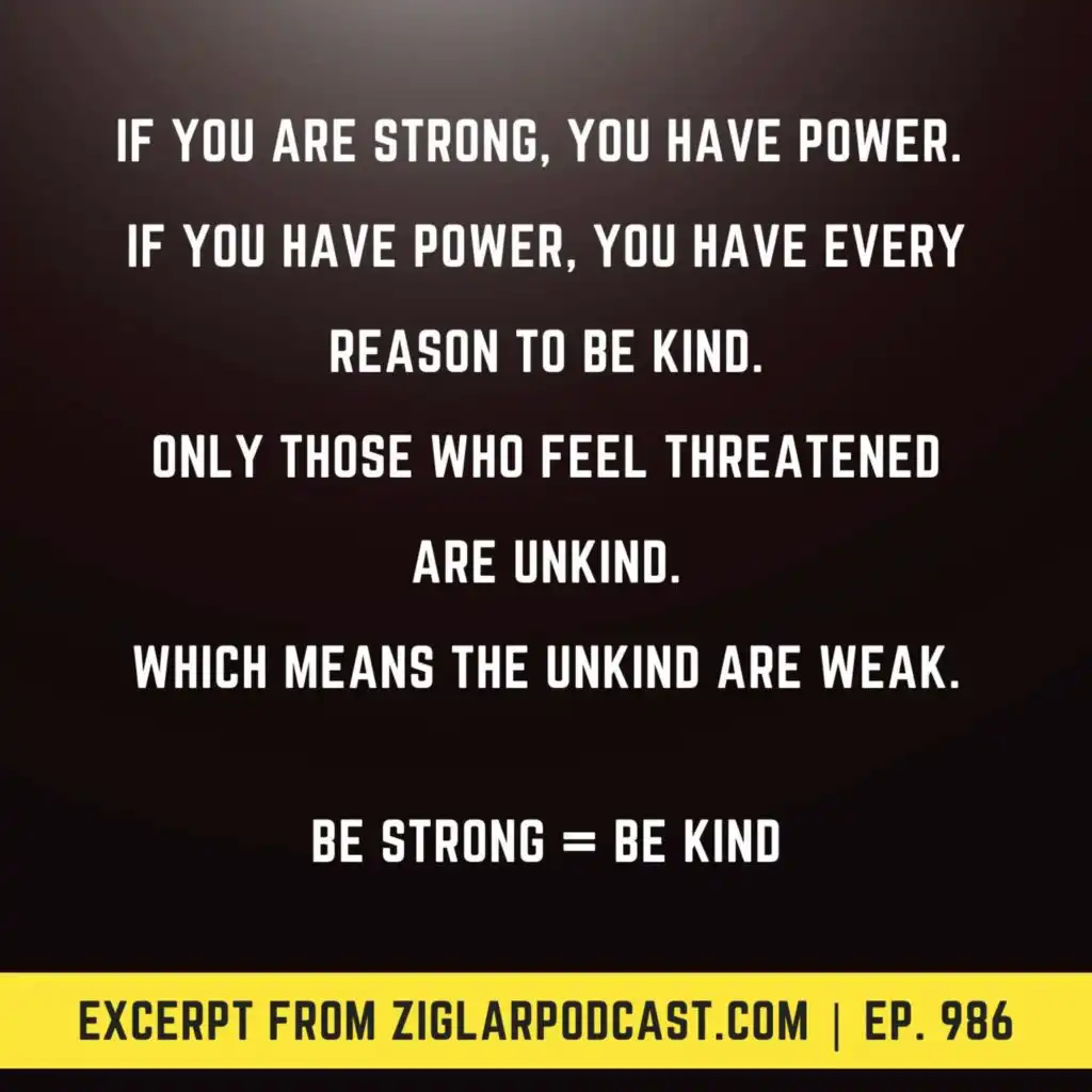#986: The power of…kindness. As you’ll hear right at the top of the show, set aside your altruistic thoughts about “kindness” and hear Tom Ziglar and I present it as a primary tool you can use to gain trust, attract people to you, and be the biggest person in the room. The spirit of today’s media polluting our culture today is one of massive unkindness and I ... Show More