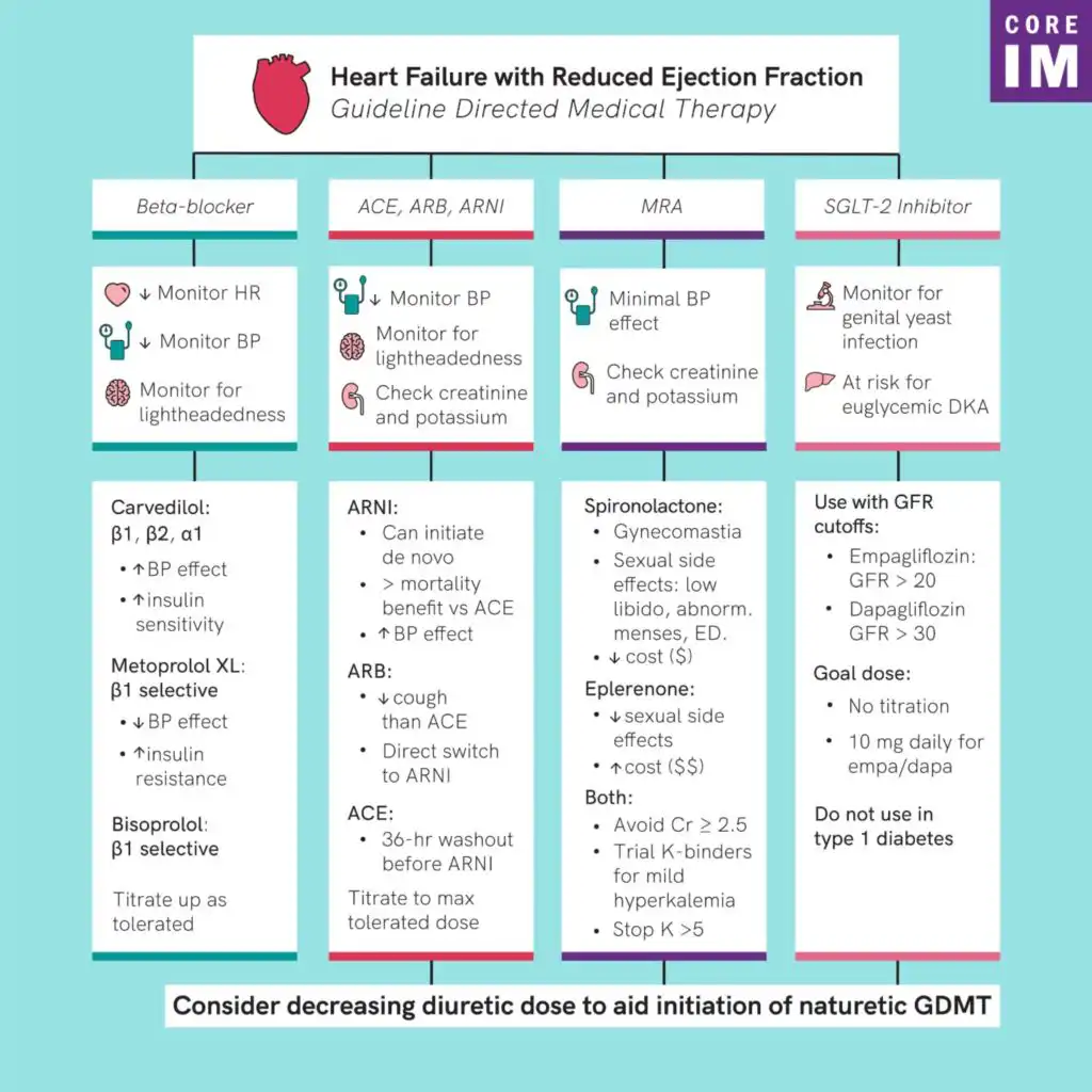 How do you counsel patients on beta blockers? Is one beta-blocker better than the other? What is preferred: ACEi, ARBs or ARNIs? What are the pros and cons of each? How does spironolactone compare to eplerenone? When do you stop mineralocorticoid receptor antagonist? What are risks with SGLT2 inhibitors? How do you initiate GDMT? Which meds do you start firs ... Show More