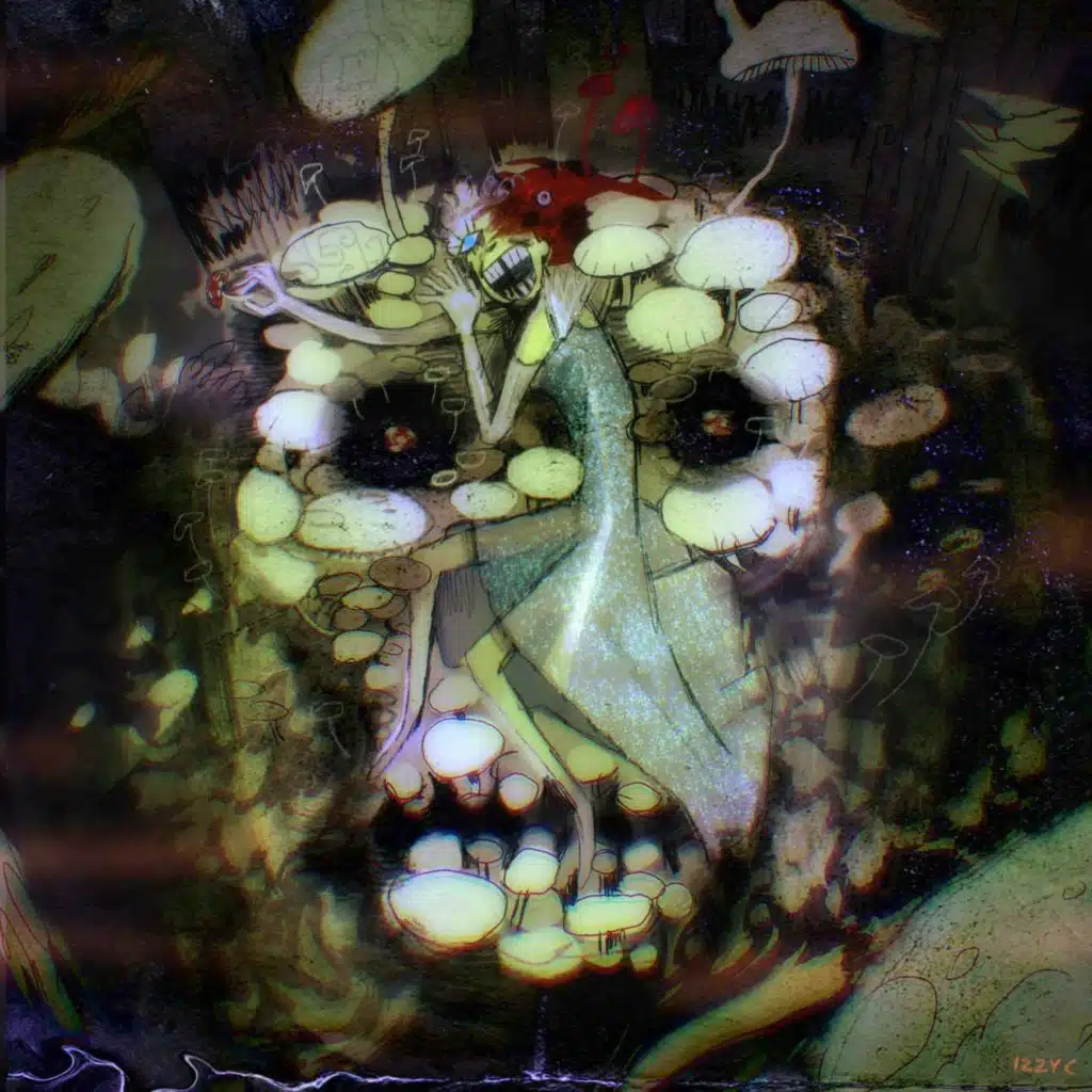 Mushrooms cover the lobby, growing impossibly out of every surface, including the staff...