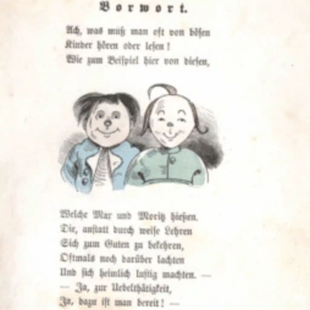 Es gibt ein altes Kinderbuch, das heißt „Max und Moritz“. Wilhelm Busch hat es 1865 veröffentlicht. Bis heute ist es eines der meistverkauften Kinderbücher. Es wurde in 300 Sprachen und Dialekte übersetzt.