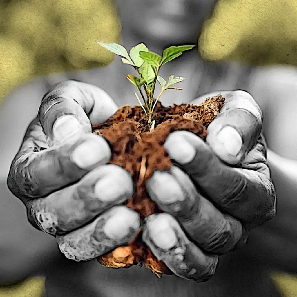 Picture: Woman holding a plant growing in soil (Credit: Getty/BBC)