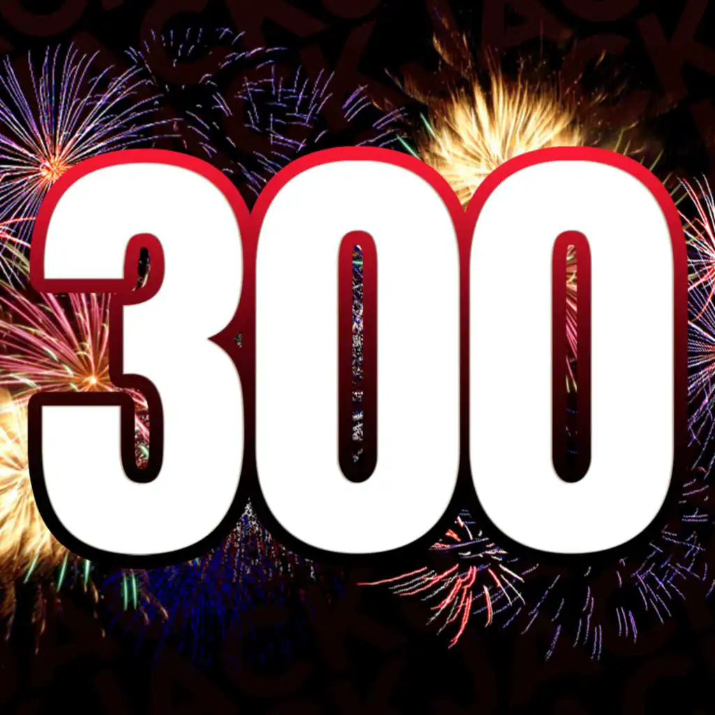 Four close man friends gather around to celebrate 300.