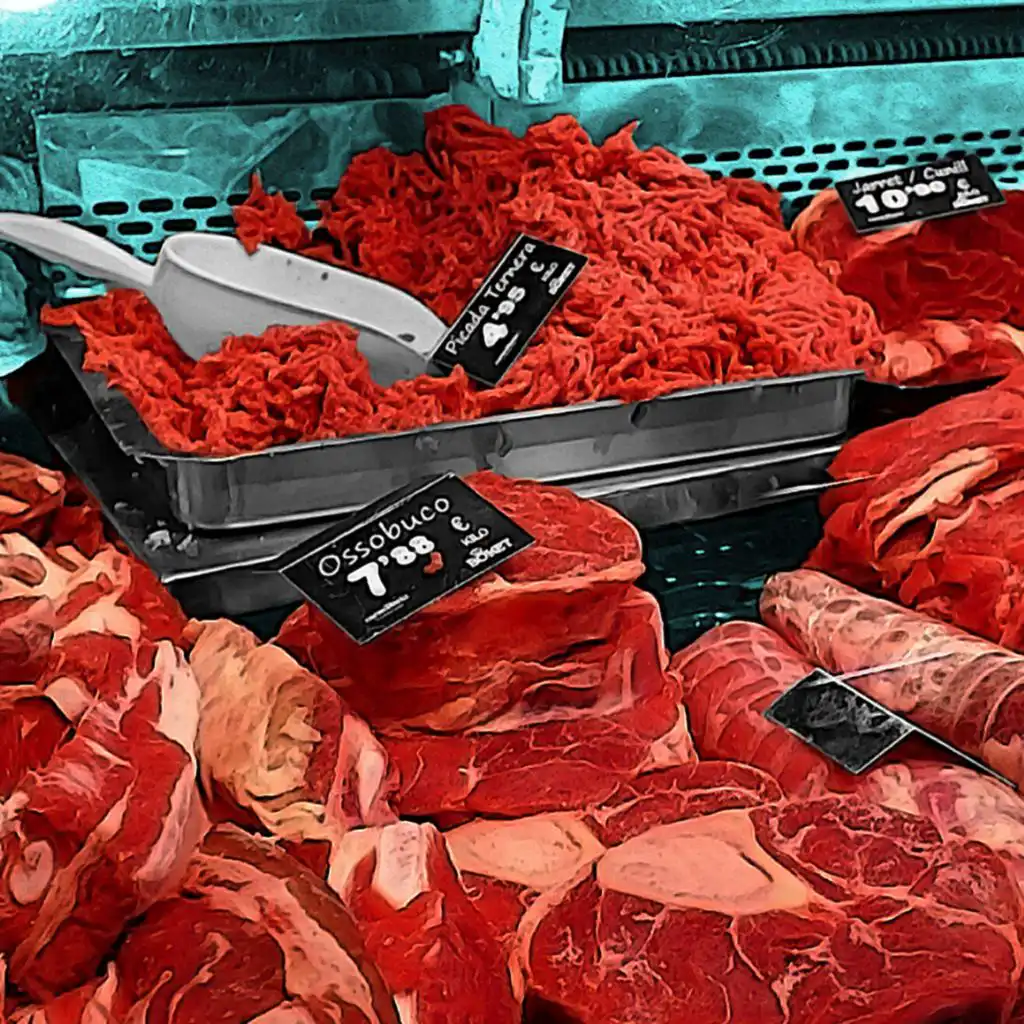 (Image: trays of meat on a butcher’s counter with prices. Credit: Getty/BBC)
