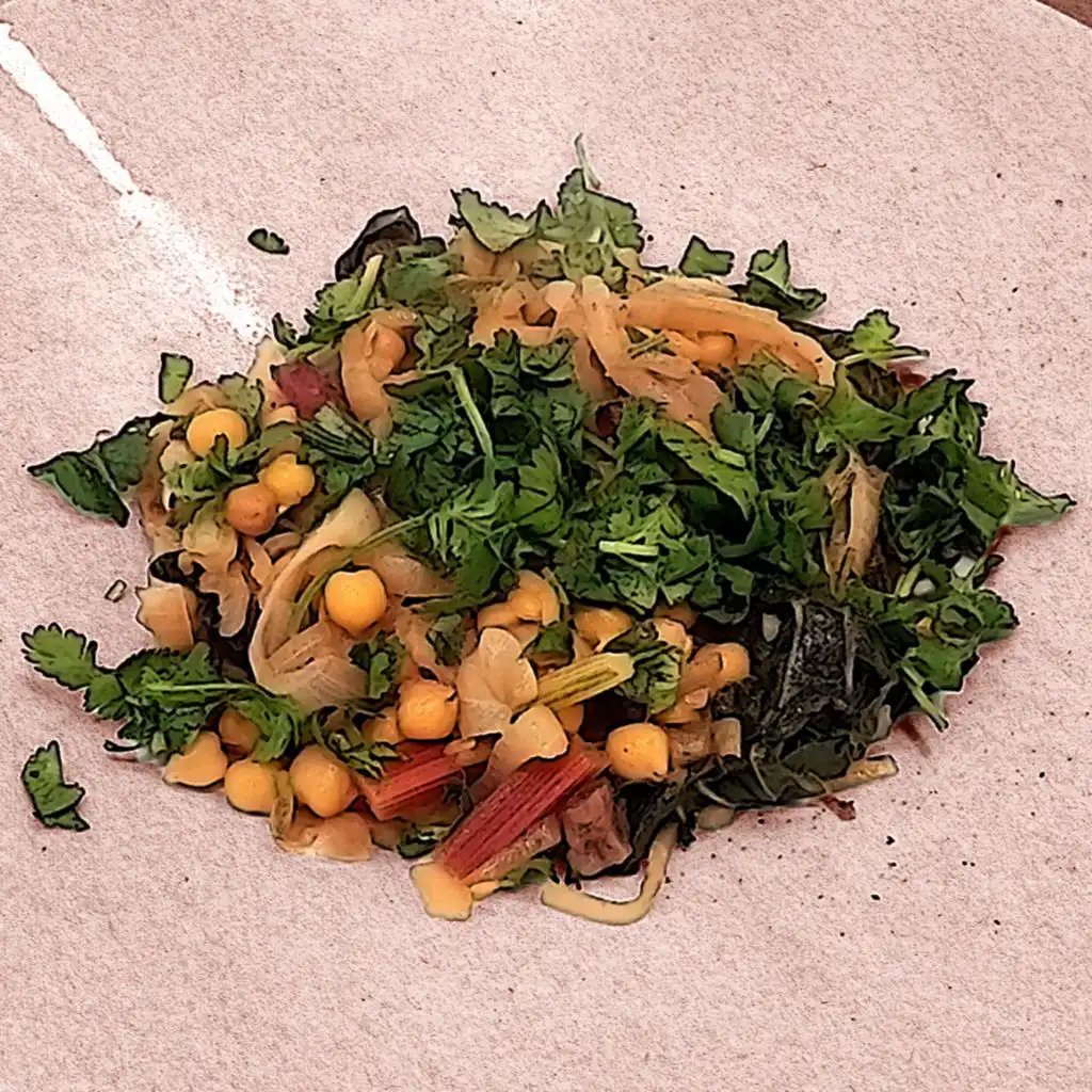 (Photo: A dish of swiss chard and chickpeas cooked by Ruth Alexander. Credit: BBC)
