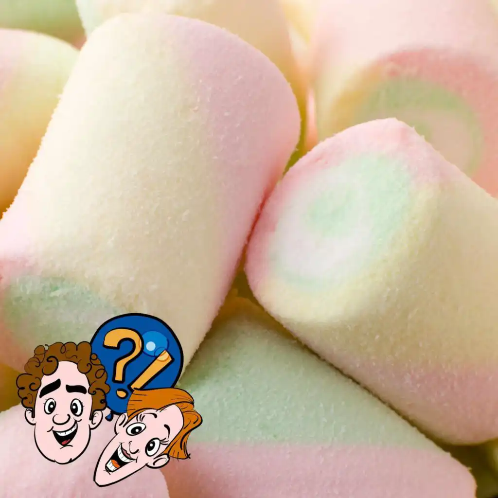 Es wird klebrig im Lachlabor. Mischa und Tinas Experiment: Ein Trampolin aus Marshmallows - kann man auf den kleinen fluffigen Süßigkeiten hüpfen?