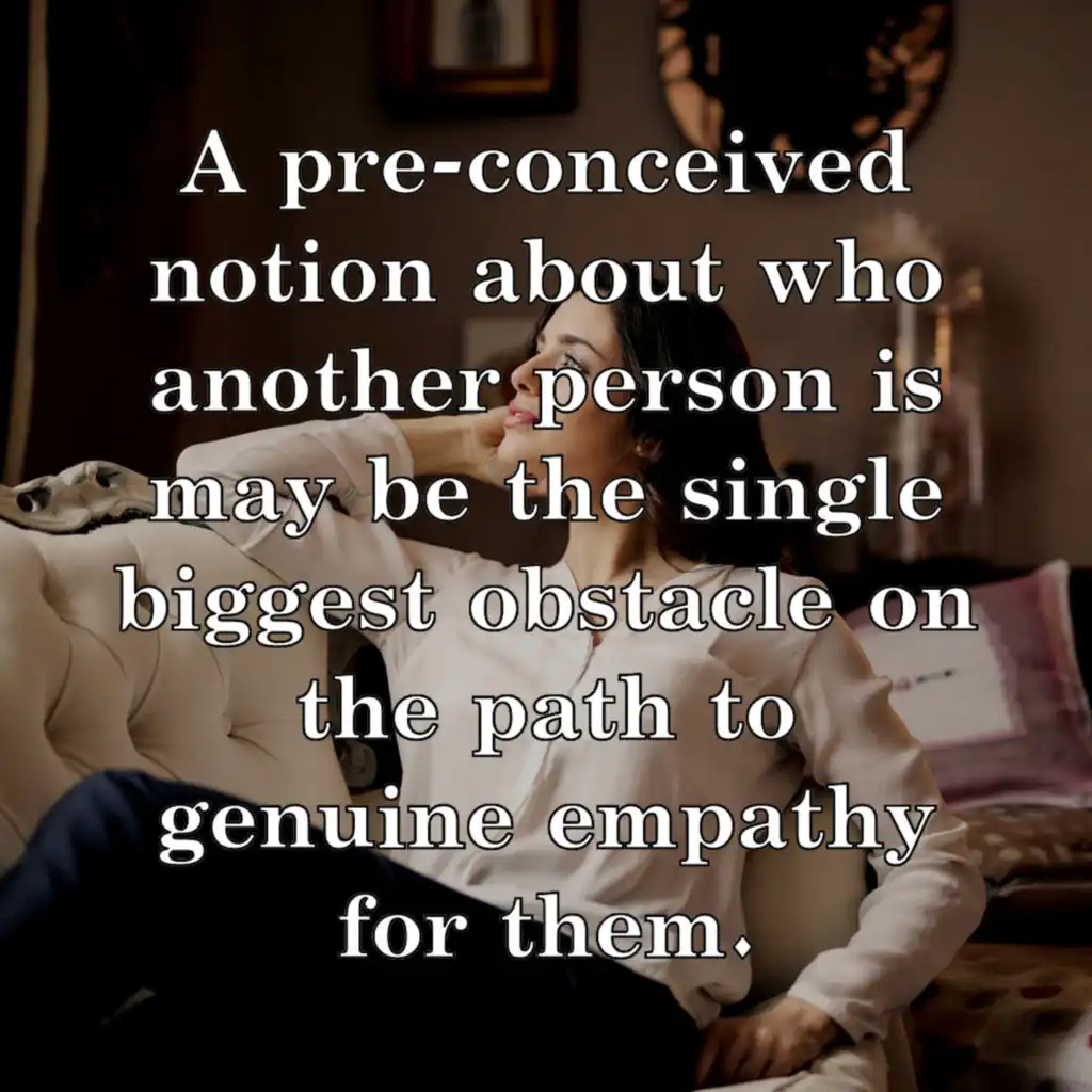 • A pre-conceived notion about who another person is may be the single biggest obstacle on the path to genuine empathy for them. Getting rid of bias is about more than guarding against sexism or racism and more about consciously choosing to remember that all people are united in their shared humanity.