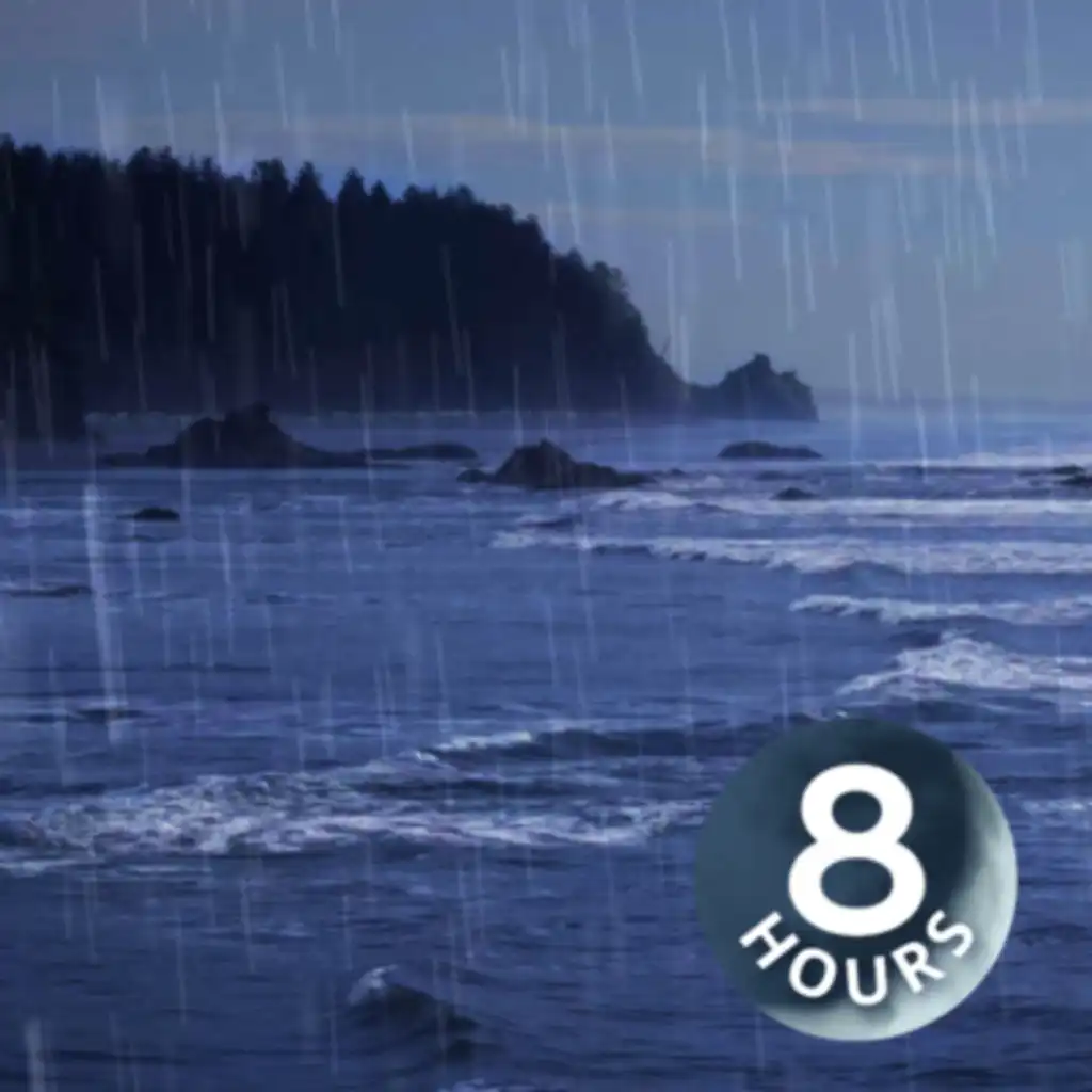 A stormy day at the ocean. . . a gentle rainstorm falls upon waves rolling in along the rocky shoreline. The peaceful rain noise is great for relaxation, while the low tide produces white noise water sounds that block out unwanted distractions. These ocean and rain sounds continue for 8 hours to help you sleep through the night without interruption.