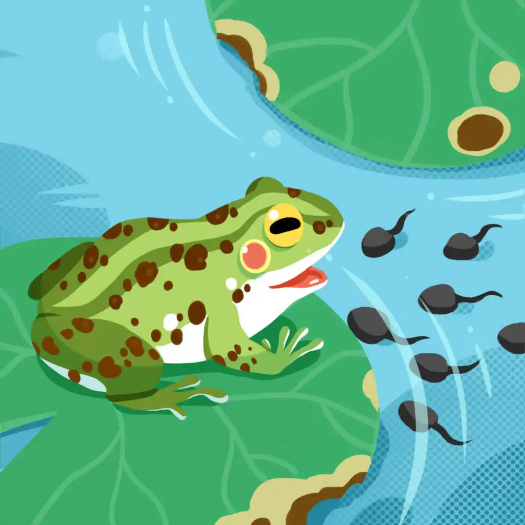 Once upon a time, there was a group of cute little tadpoles, with big heads and long tails, swimming around in the pond.