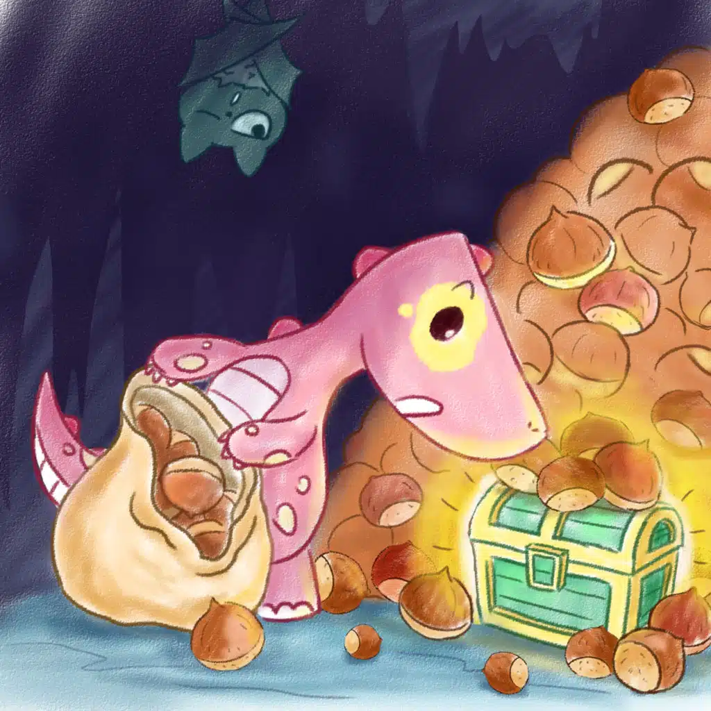 Spotty Dinosaur found a mysterious box under the chestnut pile in the cave, he wants to know what is in the this box.