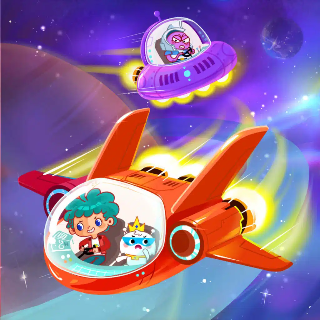 Black Octopus rush toward Titus and Kirby by their purple spaceship, Titus and Kirby quickly crawl into their spaceship. Two spaceships start to race in Saturn’s ring, all the Saturnian aliens gather to cheer them on from both sides of Saturn’s ring. If you like this story ,subsc ... Show More