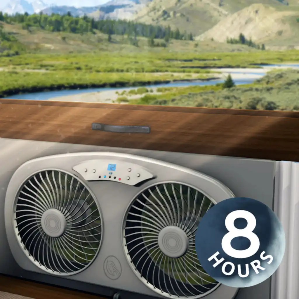 Flip the switch of this virtual window fan and relax to the soothing hum of its white noise. Many people rely on the sound of a fan to fall asleep as it can help block out noises that may keep you awake at night. Plus, the fan sound is less distracting than music or the TV. This fan noise lasts for 8 hours, helping you fall asleep and stay asleep all night long!