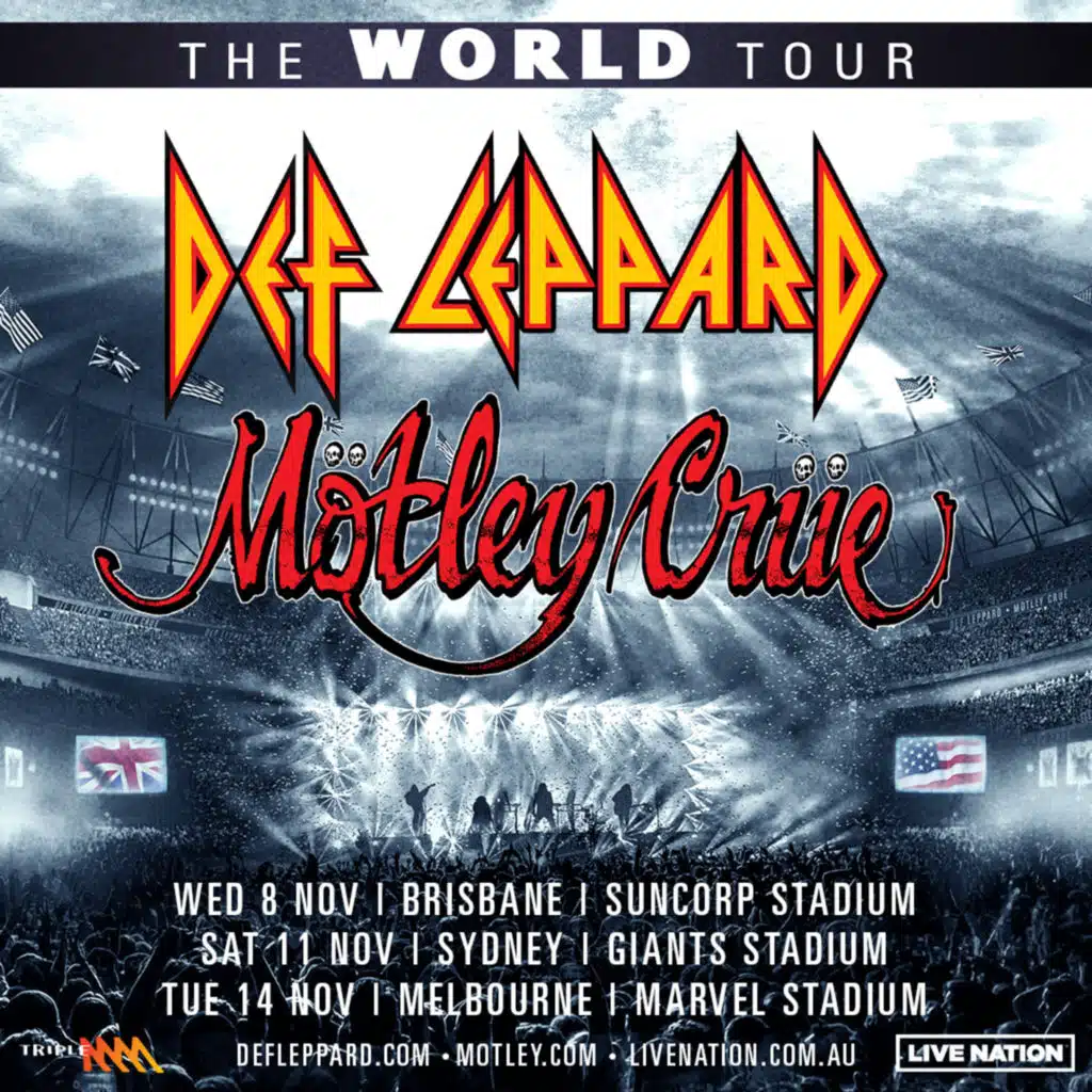 Here's the latest in Triple M Rock News with Kalun! Get ready for an unforgettable experience as two legendary rock bands, Def Leppard and Mötley Crüe, embark on their co-headline world tour, hitting the Australian shores this November.