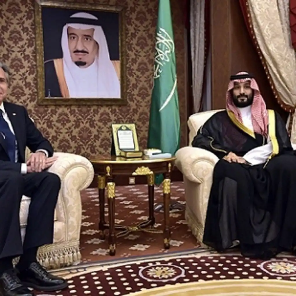 <div dir="rtl">(شبكة أجيال)-أعلن مسؤول أميركي أن وزير خارجية الولايات المتحدة أنتوني بلينكن، بحث مع ولي العهد السعودي الأمير محمد بن سلمان، خلال اجتماع في جدة ليل الثلاثاء-الأربعاء، ملفّات عدة وقضايا إقليمية وثنائية من بينها تطبيع العلاقات مع إسرائيل وحقوق الإنسان.