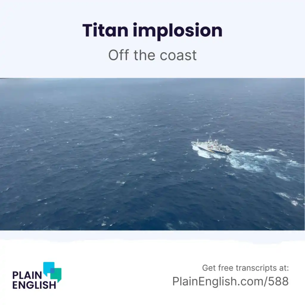 Five people died after their submersible 'Titan' imploded deep in the Atlantic Ocean, hours after they left on an exploratory mission to the site of the Titanic shipwreck. On today's lesson, learn about what sponsor OceanGate did and how the Titan's mission was supposed to go. Plus, learn the English expression ""off the coast.""