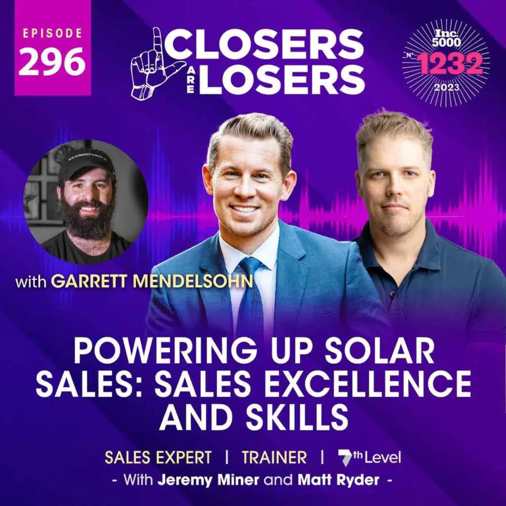 Welcome to today's episode as host Jeremy Miner joined by guest Garrett, an esteemed expert in the solar industry. Prepare for an engaging conversation where Garrett shares invaluable insights on sales techniques and sheds light on the remarkable advantages of the NEPQ training. Don't miss out on this illuminating discussion that promises to illuminate your sales journey.