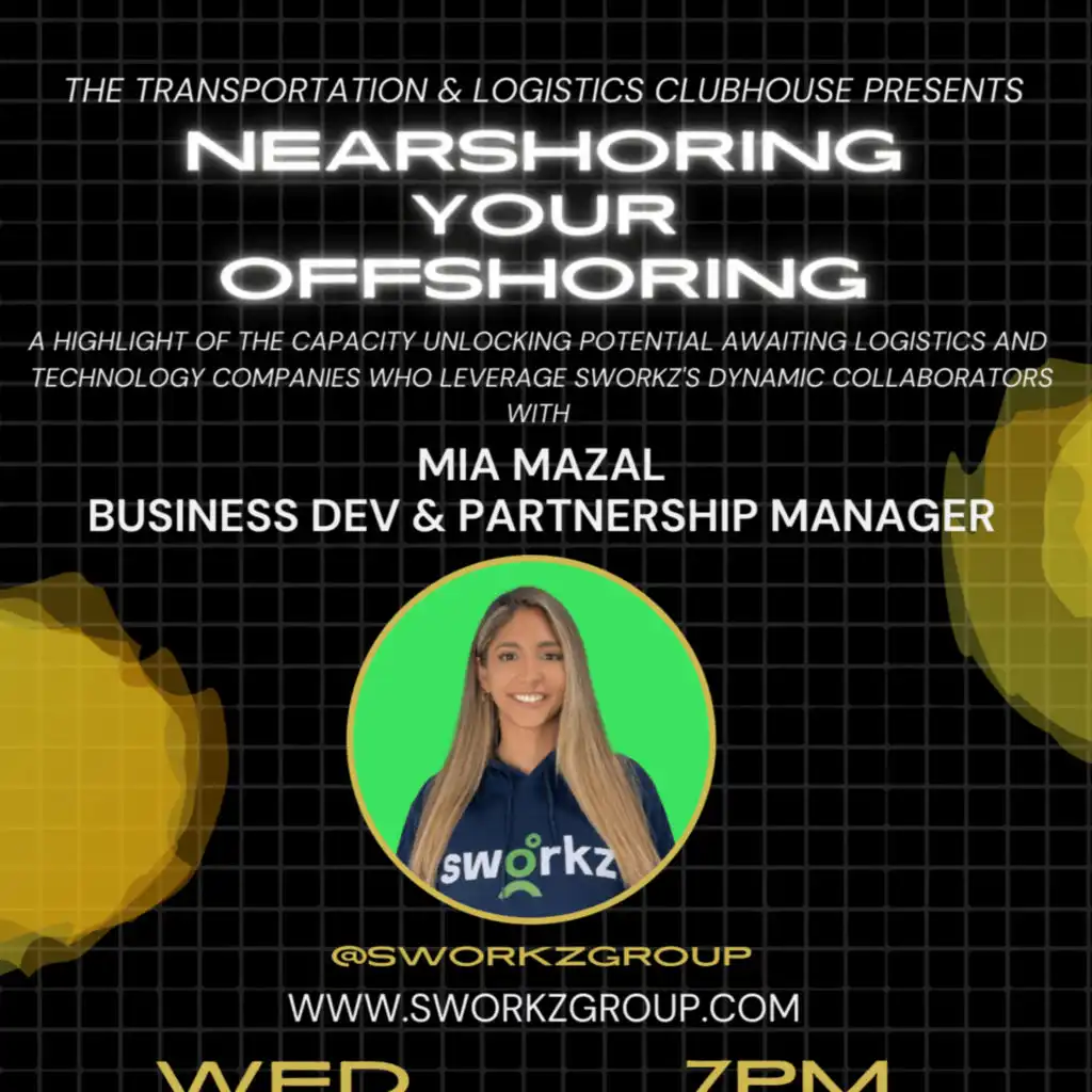 In a lean business environment where focusing on the revenue generating tasks is a must, offshoring the other duties can unlock your true capacity. The Transportation & Logistics Clubhouse welcomes Mia Mazal of Sworkz to discuss how their nearshore operations are perfect for your offshoring needs.