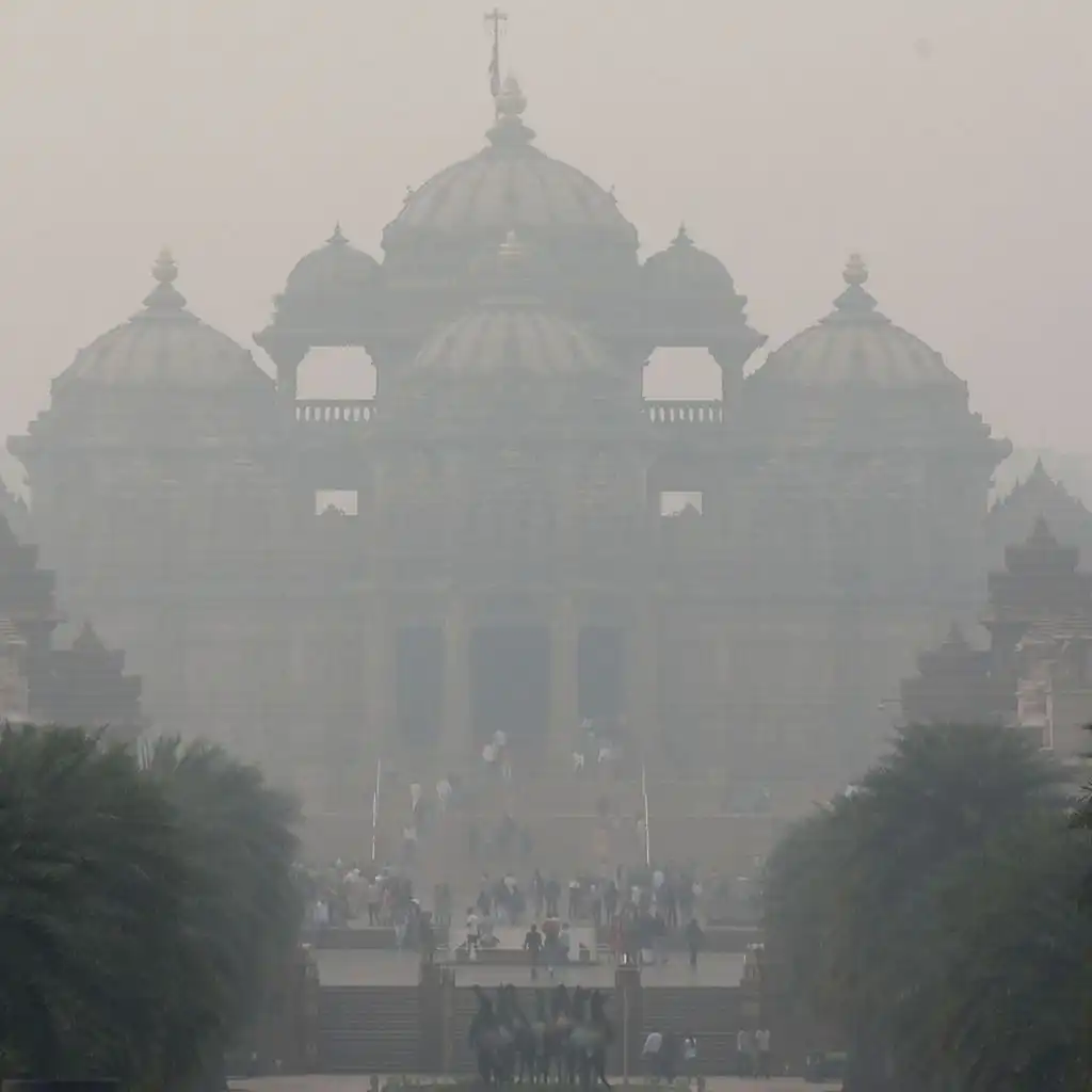 (Picture: The Swaminarayan Akshardham temple under a thick layer of smog in Delhi, India. Credit: Harish Tyagi/Shutterstock)