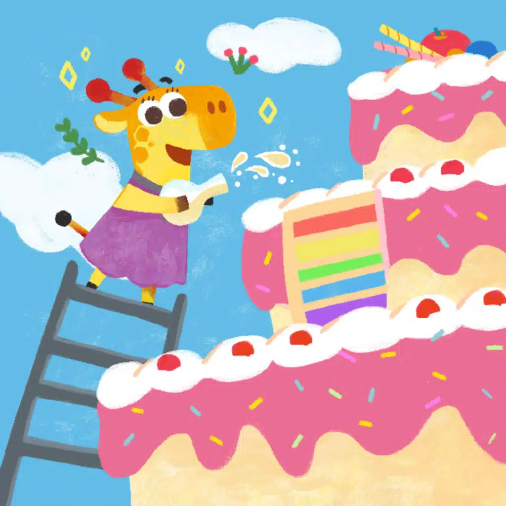 What happens when a cake grows as big as a hill? Find out in the next sweet chapter! 🦕🦒