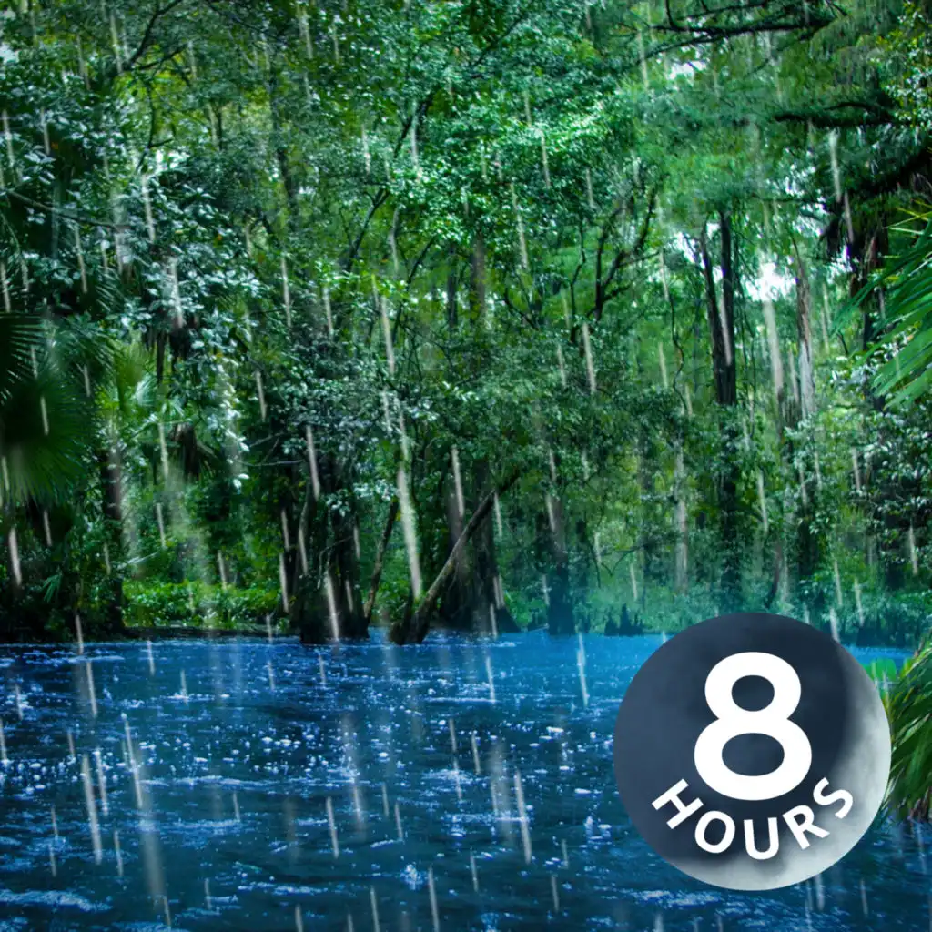 The jungle river flows peacefully, bringing relaxing sounds to the forest. On this serene evening, the rain falls on the running water creating a calming ambience — perfect for helping you fall asleep. Natural white noise can help your mind feel at ease when sleeping as it can cover up background distractions that keep you up at night, while not being as intrusive as music or the television. Immerse yourself in relaxation and stress relief with rain sounds for sleeping and water white noise.