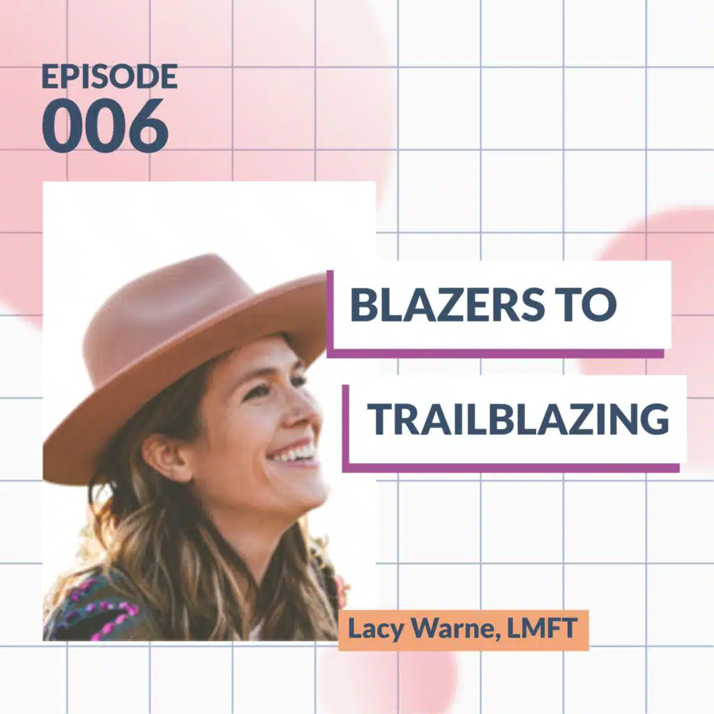 Lacy Warne, LMFT left the blazer behind in pursuit of widespread, authentic connection. But don't worry – if you love your blazer, we won't judge. Kelley and Lacy share their own self-made barriers to success: from decision paralysis to plateaus in passion. How personal and professional triumph over them becomes the most powerful asset in each individual's quest for fulfillment. But don't worry – if you love your blazer, this podcast is still for you.