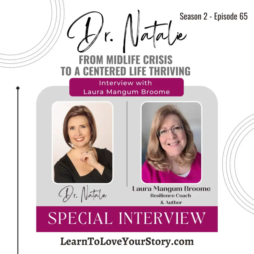 In today's episode of Midlife Crisis to a Centered Life Thriving, Laura Mangum Broome shares her story of going through a heart transplant, divorce, the death of her child, and other challenges during her midlife years. She emphasizes the importance of radical acceptance and gratitude in overcoming difficult situations. Laura's approach is focused on taking small steps, practicing self-care, and finding what is within her control. She also reflects on her past experiences and draws on her strengths and character traits to navigate through adversity. Laura Mangum Broome, a resilience coach and author, shares her personal journey with Dr. Natalie of overcoming multiple life-changing events and developing resilience skills, to help other women in midlife to hear that even difficult change will not keep us from living a life that we love. She emphasizes the importance of sharing our stories and finding inspiration in the experiences of others. Laura highlights the need to step out of our comfort zones and find fulfillment in life. She encourages women to embrace change, set healthy boundaries, and prioritize self-care. Laura's wisdom reminds us that life dissatisfaction is a choice, and we have the power to choose growth and resilience. Keywords heart transplant, divorce, challenges, radical acceptance, gratitude, small steps, self-care, strengths, character traits, adversity, resilience, overcoming adversity, comfort zone, fulfillment, self-care, healthy boundaries, change, growth mindset, Laura Mangum Broome, Dr. Natalie podcast, Midlife Crisis to a Centered Life Thriving podcast, podcast for women, podcast for midlife, self-compassion, self-awareness, emotional agility, growth mindset, empowerment Takeaways - Practice radical acceptance and focus on what is within your control. - Find gratitude in the midst of difficult situations. - Take small steps and set achievable goals to move forward. - Reflect on past experiences and draw on your strengths and character traits to navigate through adversity. - Sharing our stories can inspire and support others in their own journeys. - Stepping out of our comfort zones can lead to personal growth and fulfillment. - Setting healthy boundaries and prioritizing self-care are essential for well-being. - Embracing change and having a growth mindset can lead to resilience and joy in life. To see more of Laura's offerings check her out here: Website: https://iCope2Hope.com Free Resource: 20 Key Strategies to Strengthen Resilience and Embrace Change https://iCope2Hope.com/20strategies Free Signed Paperback Copy of her Book: Flourishing After Adversity (pay $4.99 shipping & handling, US orders only) https://iCope2Hope.com/freebook _________________________________________________ JOIN the LearnToLoveYourStory.com Mailing List! Join my newsletter and receive my FREE video and workbook, “Freeing Yourself: A Guide for Letting Go of Other People's Opinions” SIGN UP on the website at https://dashboard.mailerlite.com/forms/762561/109840834025752017/share DISCLAIMER: The content in this podcast and video is not a replacement for therapy and is not clinical, medical, or mental health treatment. Dr. Natalie Marr is a Licensed Psychologist in the state of Minnesota. Her work with LearnToLoveYourStory.com, NatalieMarrCounseling.com, and all affiliate social media entities is educational and coaching based ONLY. She IS NOT offering therapeutic services of any kind on these mediums. If you or someone you know is having a mental health crisis or having thoughts of suicide, please use the following crisis resources (this is not an exhaustive list of available resources): National Suicide Prevention Lifeline: https://suicidepreventionlifeline.org/ CALL 988 Crisis Text Line: https://www.crisistextline.org/ Text HOME to 741741