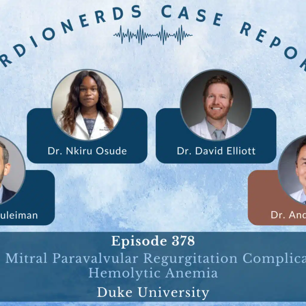 CardioNerds cofounder, Amit Goyal joins Dr. Belal Suleiman, Dr. Nkiru Osude, and Dr. David Elliott from Duke University. They discuss a case of severe mitral paravalvular regurgitation complicated by hemolytic anemia. Expert commentary is provided by Dr. Andrew Wang. Audio editing by CardioNerds Academy Intern, student doctor Adriana Mares.