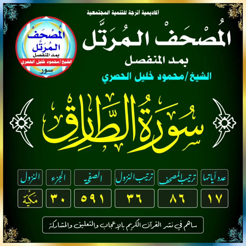 (سُورَةُ الطَّارِقِ /مَكيَّة /رَقَمُهَا 86 /عَدَدُ آيَاتِهَا 17 /تَرْتِيبُ النُّزُول 36 /رَقَمُ الصَّفْحَة 591)