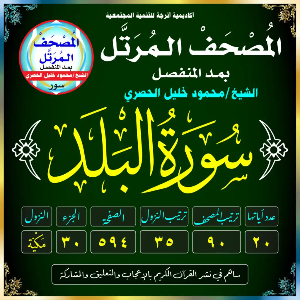 ‏<p>(سُورَةُ البَلَدِ /مَكيَّة /رَقَمُهَا 90 /عَدَدُ آيَاتِهَا 20 /تَرْتِيبُ النُّزُول 35 /رَقَمُ الصَّفْحَة 594)</p>