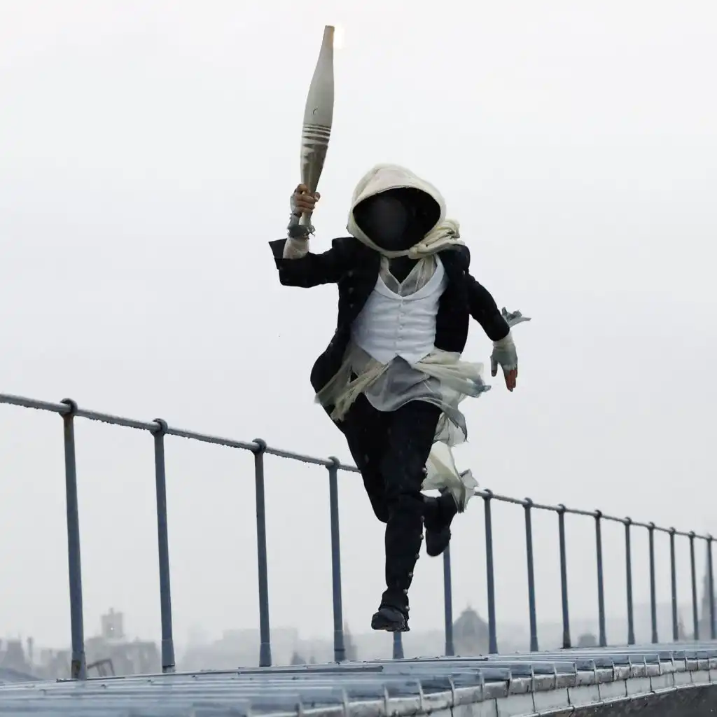 (Photo: A torchbearer runs atop the Musee d'Orsay during the opening ceremony. Credit: REUTERS/Peter Cziborra)