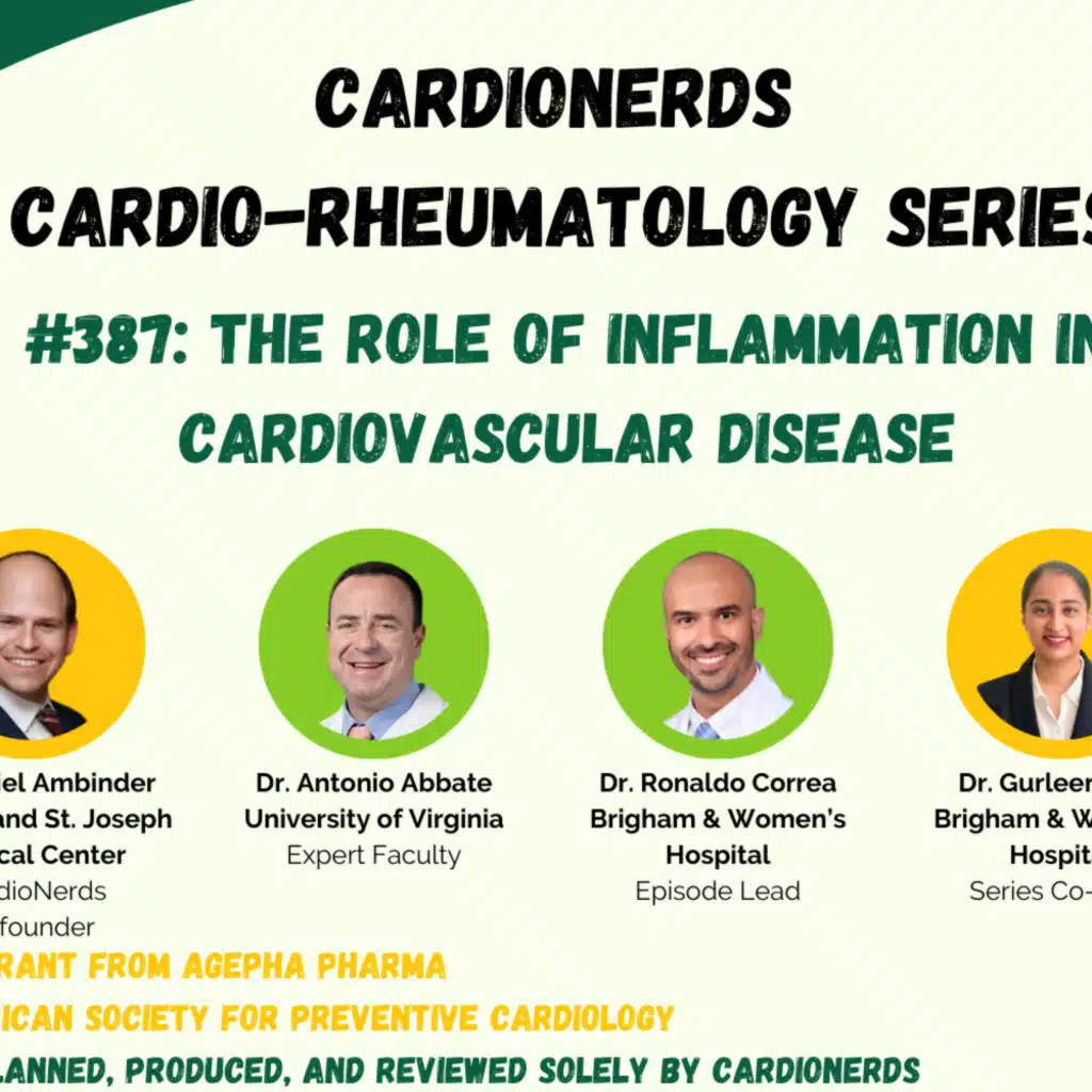 Join the CardioNerds as they kick off the Cardio-Rheumatology series with Dr. Antonio Abbate. In this episode, Dr. Abbate, a leading expert in cardio-immunology, discusses the role of inflammation in cardiovascular disease. We explore the molecular mechanisms linking inflammation to atherosclerosis, the impact of chronic low-grade systemic inflammation on heart disease, and potential therapeutic targets. Dr. Abbate shares insights on how genes and lifestyle factors contribute to inflammation, the use of inflammatory markers in clinical practice, and emerging anti-inflammatory therapies in atherosclerotic cardiovascular disease. Tune in for an enlightening conversation on the intersection of inflammation and cardiovascular health.