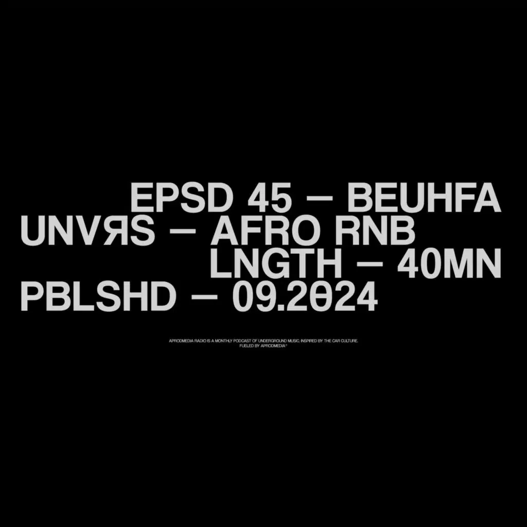 Episode 45 du podcast, un écart à l'underground pour un mix Afro Rnb par Beuhfa @fabien-linnot. Appréciez ! Beatmakers, Dj... si vous souhaitez rejoindre le projet, contactez-moi.