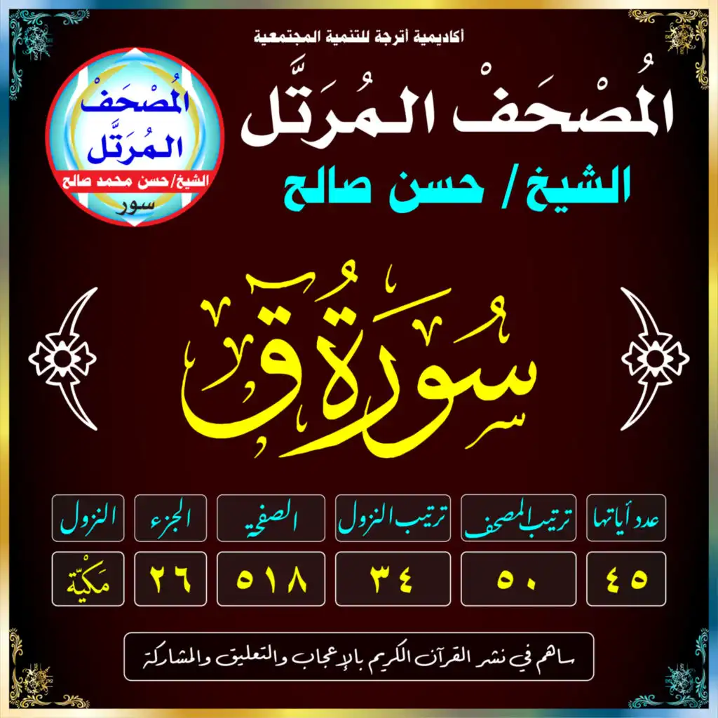 (سُورَةُ قٓ /مَكيَّة /رَقَمُهَا 50 /عَدَدُ آيَاتِهَا 45 /تَرْتِيبُ النُّزُول 34 /رَقَمُ الصَّفْحَة 518)