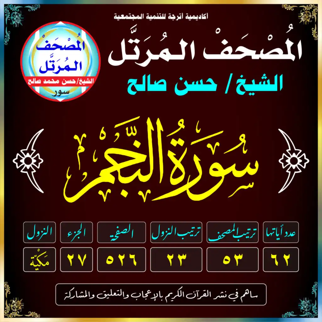 (سُورَةُ النَّجْمِ /مَكيَّة /رَقَمُهَا 53 /عَدَدُ آيَاتِهَا 62 /تَرْتِيبُ النُّزُول 23 /رَقَمُ الصَّفْحَة 526)