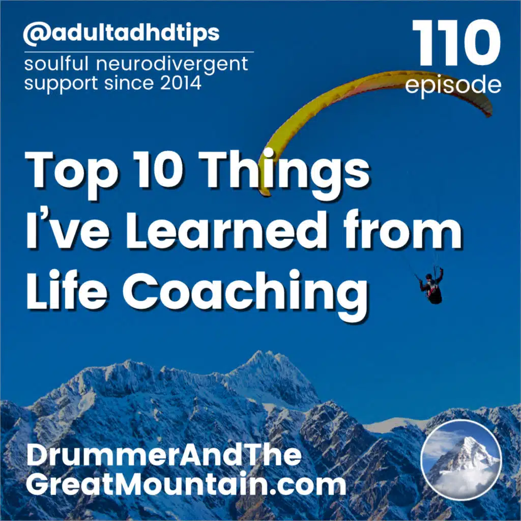 Adult ADHD ADD Tips and Support Podcast - A Podcast for Neurodivergent Creatives. Top 10 Things I've Learned from Life Coaching. This podcast is an audio companion to the book "The Drummer and the Great Mountain - A Guidebook to Transforming Adult ADD / ADHD."