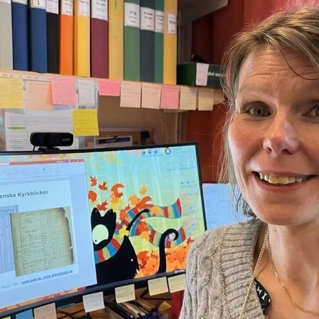 Malin Olsson är forskningsingenjör vid Umeå universitetsjukhus och visar runt i det hon kallar torrlabbet, nämligen platsen vid datorn.
