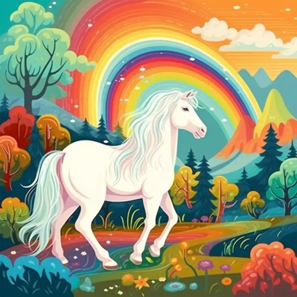 <div dir="rtl">☔️🌈 قصة اليوم مليئة بالألوان والمفاجآت! 🐴💦 ما الذي قد يحدث عندما يقرر المُهر الصغير تحدي الشمس... ويكتشف سر قوس قزح الجميل؟ 🤭🧐
