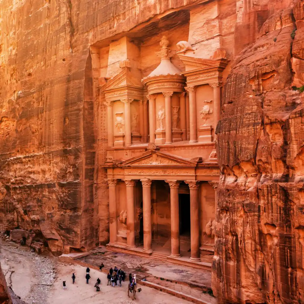 Petra, the ancient city carved into the sandstone cliffs of Jordan, is a testament to the ingenuity and artistry of the Nabataean civilization. Established in the 4th century BC, Petra's strategic location along trade routes fueled its prosperity. The Nabataeans carved impressive structures like the Treasury and the Monastery directly into the rock face usin ... Show More