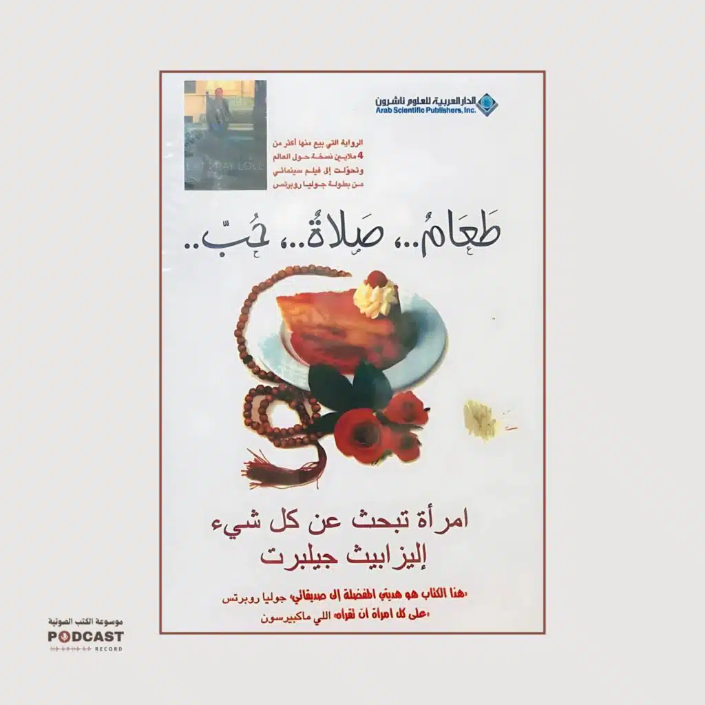 الرواية التي باعت أكثر من ٤ مليون نسخة حول العالم وتحولت لوحد من أفضل أفلام هوليوود. "طعام صلاة حب" للكاتبة الكبيرة إليزابيث جيلبرت" رحلة روحية لا تفرق بين الديانات وبحث مستمر عن السلام النفسي. امرأة تتخذ قرارًا بتغيير حياتها تمامًا وتسافر إلى أكثر من دولة في محاولة لاكتشاف ذاتها.