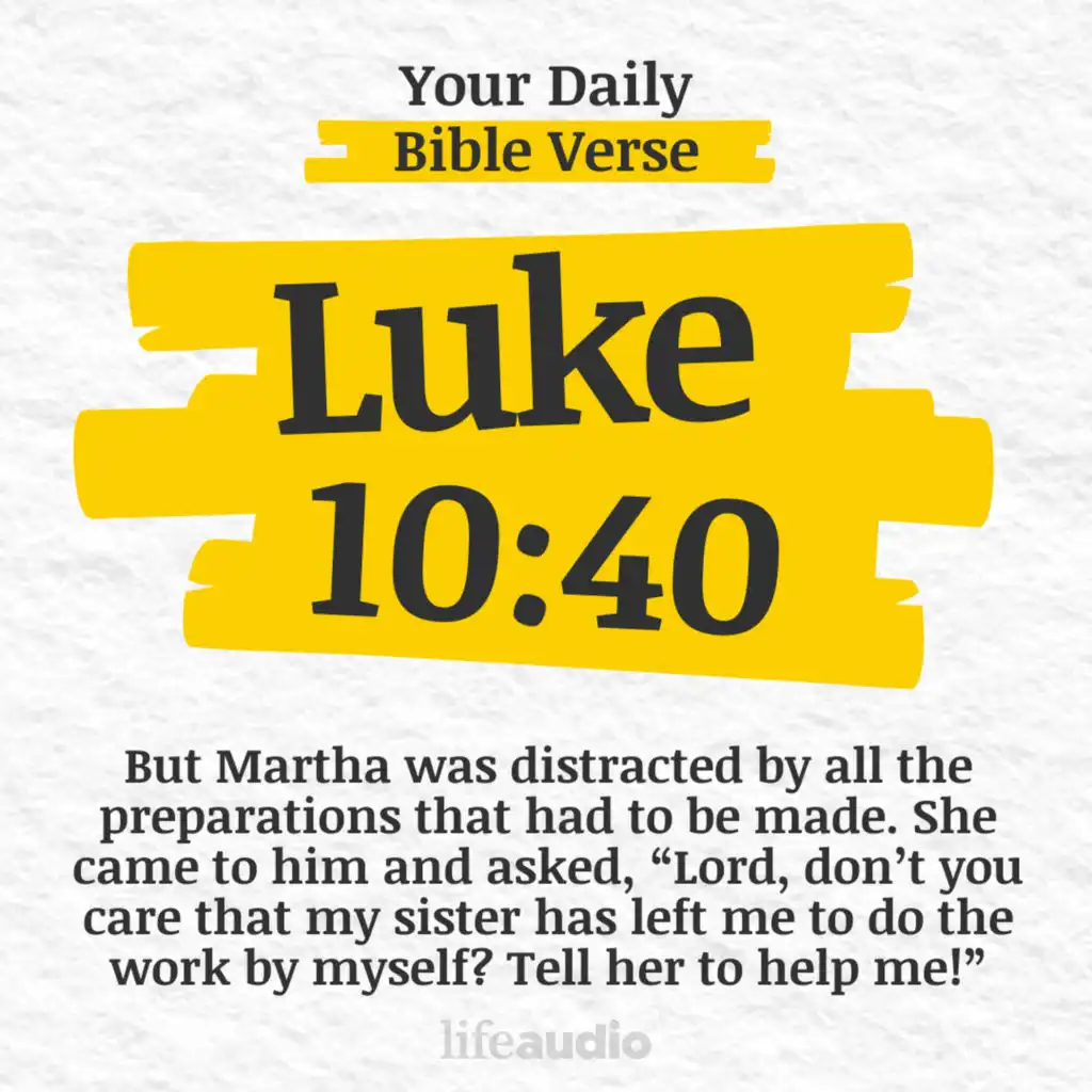 Today’s Bible Verse: "But Martha was distracted by all the preparations that had to be made. She came to him and asked, “Lord, don’t you care that my sister has left me to do the work by myself? Tell her to help me!”" - Luke 10:40