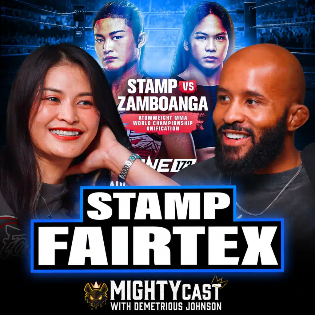 STAMP FAIRTEX IS BACK!"Mighty" Demetrious Johnson is joined by three-sport world ONE world champion Stamp Fairtex on the latest "MightyCast"!Timecodes0:00 Intro0:55 PrizePicks Code MIGHTYCAST 1:47 Welcome Stamp Fairtex! 2:32 Does Stamp Enjoy America? 3:44 Stamp is Taking English Classes! 4:21 Stamp’s Intro into Muay Thai (Fighting to Get Skinny) 8:57 Gambling in Thai Fighting 12:15 DJ Teaches Stamp English Swear Words 😂 13:18 How Often Did Stamp Fight Before One? 16:22 Stamp has a Teaching Degree 16:57 Fighting in Local Thai Fights vs One FC 21:33 Has Stamp Ever Considered Retiring? 25:11 Stamp’s Post Fighting Plan 27:02 DJ’s Thoughts on Durian 27:31 Stamp Had 7 Pomeranians 29:42 Stamp was the First 2 Sport Champ in ONE FC 30:15 Why Stamp Dances Before Fights 32:51 Stamp was the First 2 Sport Champ in ONE FC Pt. 2 34:27 Stamp’s Biggest Career Regrets 38:43 Stamp’s Intro into MMA 42:05 Stamp likes MMA more than Muay Thai? 46:23 What’s Harder on the Body MMA or Muay Thai? 48:13 Stamp’s Recovery Practices 50:22 Stamp’s Favorite American Food 51:39 How Much Longer Will Stamp Fight? 53:41 How Often Does Stamp Spar? 54:26 What is Better: Boxing or MMA Gloves? 55:36 How to Support Stamp 58:00 How Stamp Comes Back from a Loss 1:00:58 GSP’s Advice for DJ 1:02:32 Where to Follow Stamp 1:03:39 MightyRecap! 1:03:57 Stamp’s Unconventional Background 1:05:23 Stamp Loves MMA 1:08:14 Stamp Would be HUGE in the UFC 1:10:02 Stamp’s Real Last Name is Not “Fairtex” 1:12:18 MMA Money is WAY Better than Kick Boxing 1:13:32 GSP Inspires DJProduced/edited by Michael Wonsover (@mwonsover on IG/Twitter)Edited by Nick Pappas (@nick_pappas44 on IG)