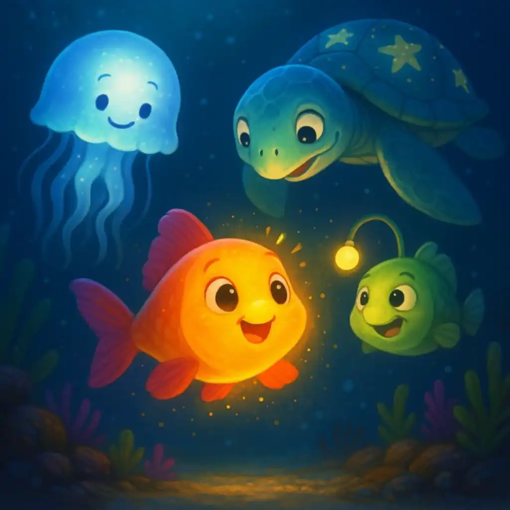 🌊💡Ziggy the little fish just discovered something glow-rious under the sea! Turns out, the dark ocean might not be so scary after all… especially when you’ve got glowing friends, giggles, and maybe even your very own sparkle! ✨🐠